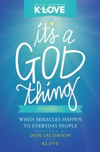 It’s a God Thing: Volume 2 (Thomas Nelson, Nov. 11, 2014) is a compilation of 58 stories proving miracles are not reserved for the Bible characters in the Old and New Testaments; they’re happening to everyday people, all around the world. This is the second book Jacobson and K-LOVE have released in the series sharing miraculous stories from everyday people.